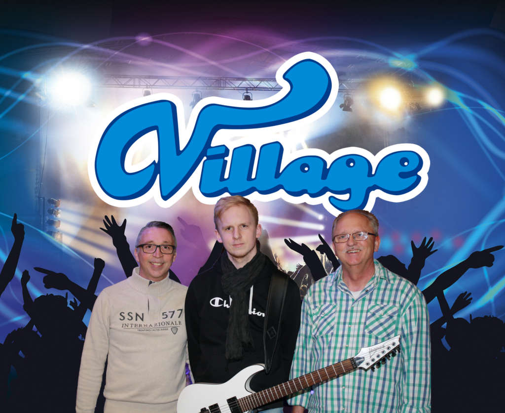 Band VILLAGE – ist IHRE Tanzband – der Garant für Ihre gelungene Veranstaltung! Bestehend aus Waltari Merita, Dominik Merita, Jean Emanuel Bausch & Sängerin.